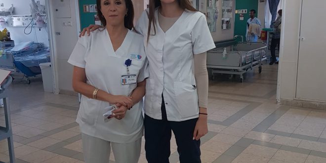 רגעים מרגשים היו בטקס חלוקת מלגות ההצטיינות בחוג לסיעוד בבית הספר למקצועות הבריאות במכללה האקדמית אשקלון, שהתקיים ביום שני האחרון, כאשר טל גואטה, סטודנטית שנה ב’ קיבלה מלגת הצטיינות נשיא ורצה לחבק את אמה, אתי גואטה, אחות אחראית במחלקה פנימית ג’ בבית החולים ברזילי באשקלון. “נחשפתי לתחום מגיל מאוד צעיר, ואיך לומר, הריח של מסדרונות הבית חולים מוכרים לי היטב”, אומרת טל הנרגשת. “גם בהתנסויות שאני עושה עכשיו אני מרגישה בבית, הסביבה לא חדשה לי. כשאני ואחותי התאומה, מור, היינו קטנות היינו מתנדבות המון במקום העבודה של אמא, במחלקות בבית החולים ברזילי באשקלון, ובחגים ובחופשים היינו מפעילות קייטנות בבית החולים. בהמשך גם התנדבתי במד”א, ולכן זה היה טבעי ללכת ללימודים כאן במכללה האקדמית באשקלון”.