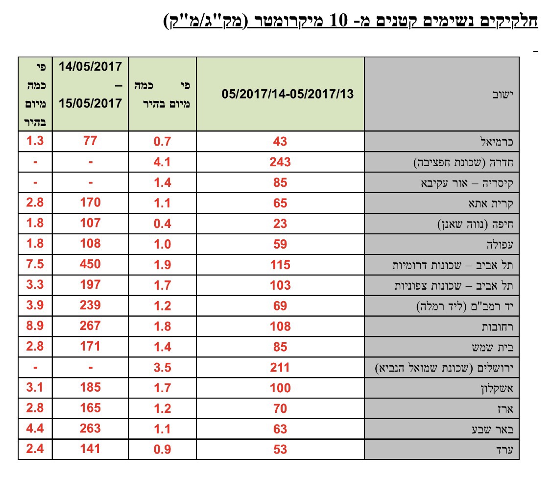 (ריכוזים של חלקיקים נשימים הקטנים מ- 10 מיקרון ביום בהיר 60 מיקרוגרם למ”ק)