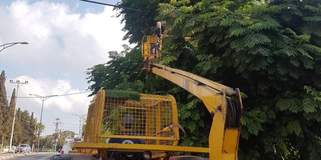 בתמונות: חברת החשמל בעבודות גיזום ענפים הסמוכים לקווי החשמל באשקלון