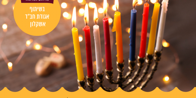 בכל ימי חג החנוכה מוזמן הציבור להשתתף בבהדלקת נרות חגיגית בשדרה המרכזית במרינה מול שבסיומה תתקיים הרקדה ויחולקו סופגניות.