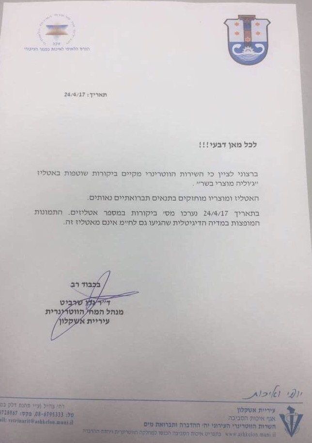 136 ק”ג של בשר, עופות ודגים הושמדו היום (ב)בחנות בעיר בפעולה משותפת יזומה של יחידת השיטור העירוני, השירות הווטרינרי העירוני בעיריית אשקלון נערכה אכיפה בחנויות בשר במהלכה השמידו באחד המרכולים בעיר 136 ק”ג בשר