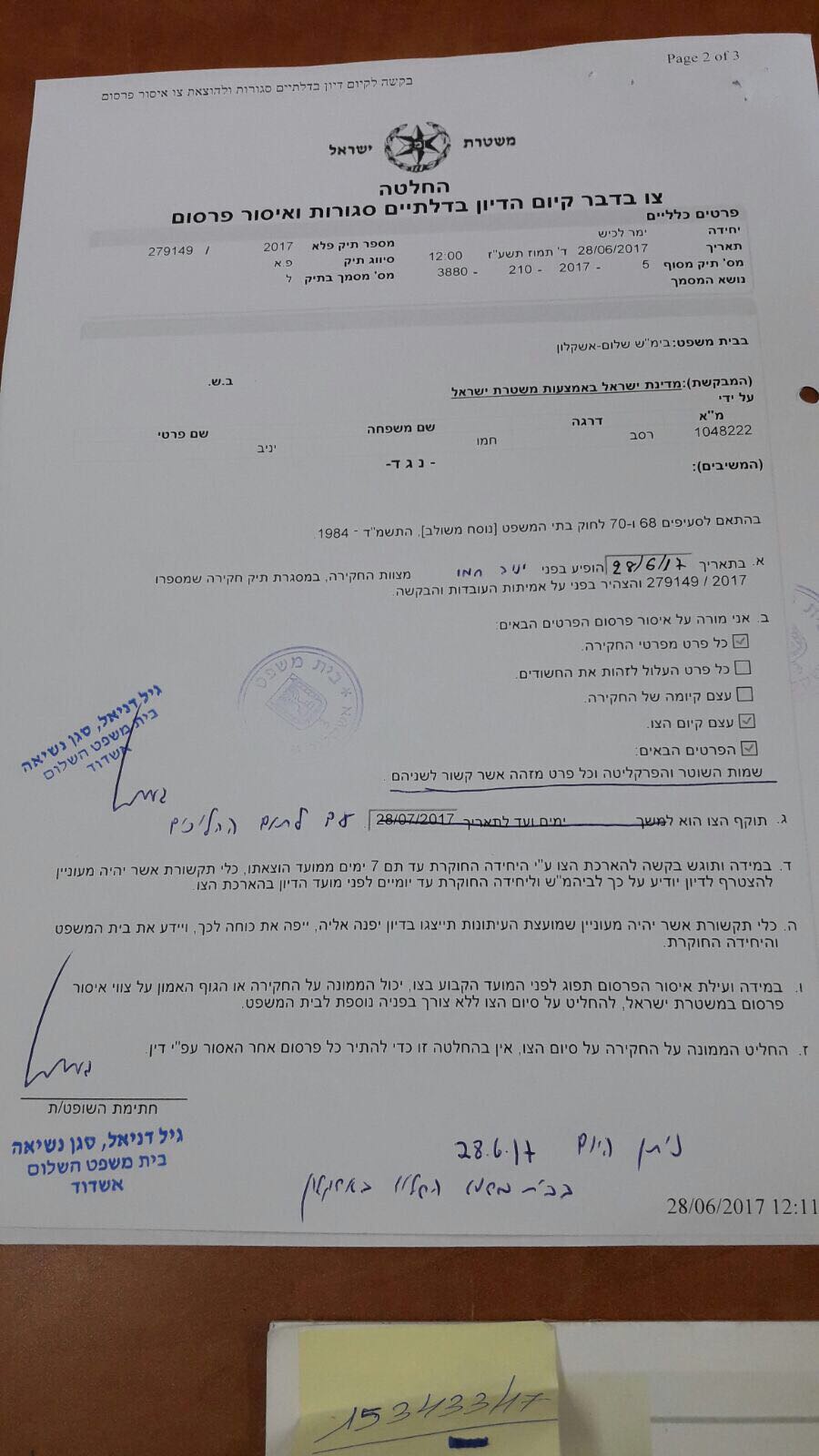 צו איסור פרסום, בהמשך לחקירת אירוע פיצוץ הרכב אתמול בלילה באשקלון, במהלכו גבר מצא את מותו ואשר נמצאת תחת צו איסור פרסום שהועבר לידיעתכם – בית משפט השלום באשקלון נעתר היום לבקשת חוקרי משטרת ישראל והוציא צו איסור פרסום על עצם קיום הצו, על כל פרט מפרטי החקירה, על פרטי השוטר והפרקליטה וכל פרט מזהה אשר קשור לשניהם וזאת עד לתום ההליכים.(למען הסר ספק – מדובר בצא״פ נוסף לצו שהועבר לכם אתמול).