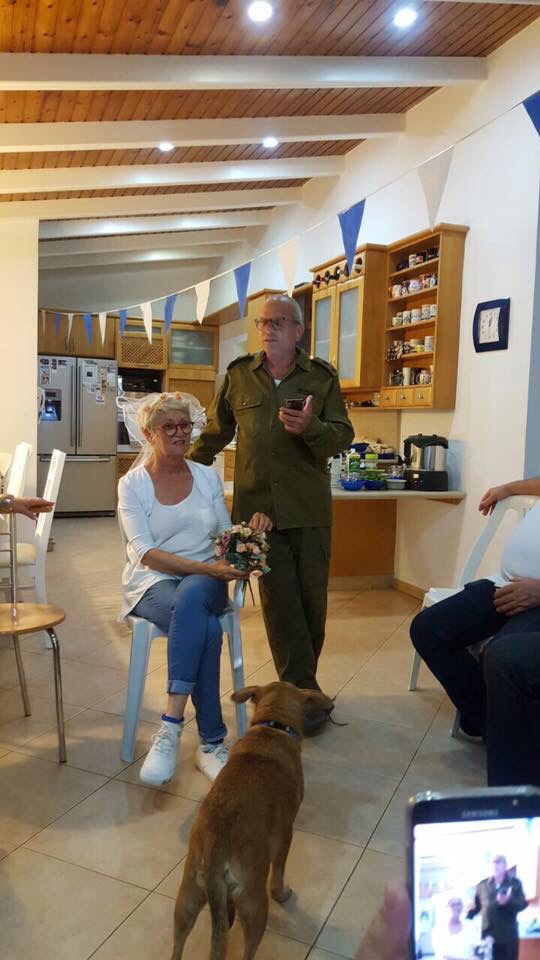 חברה פנתה אליי, ואמרה לי , יורם, 40 שנה לא הולך ברגל..אולי תעשה טקס, כמו אז… ‘אני אשחזר את ההינומה ואת הפרחים ואתה תלבש מדים, בדיוק כמו אז, כשנישאתם לפני ארבעים שנה בחתונה צבאית.אמרתי לה, הכל טוב ויפה, אבל אני משוחרר מהצבא כברה עשרים שנה, אין לי מדים.. בסופו של דבר השאלתי מחבר, הגענו למסיבה של חבר שם חגגו יום הולדת.בשלב מסוים, קראו לחנה ואמרו לה שרוצים לברך אותנו ליום הנישואים.בשלב הזה, ניכנסתי לחדר והחלפתי את הבגדים שלי למדי צה”ל, יצאתי, כרעתי בירך, ושאלתי אותה, בדיוק כמו אז..’התנשאי לי?’