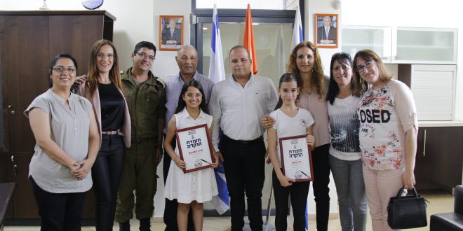 ראש העיר בפועל, תומר גלאם, העניק היום (שלישי) תעודות הוקרה לשתי תלמידות מאשקלון, שירז אבנעים וירדן כספי, שזכו בתחרות הכתיבה הארצית לשנת 2018.