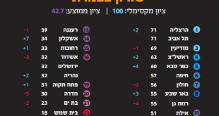 אחרי שבשנה שעברה דורגה נמוך כמעט בכל הקטגוריות, אשקלון רושמת את העלייה הגדולה ביותר במדד ומזנקת למקום ה-14 מבין הערים הגדולות בישראל. עם זאת, התקציב וההוצאות על שירותי דת בעיר הם מהגבוהים בארץ עם למעלה מ-13 מיליון שקלים; בבריכה העירונית מקנים הנחה של כמעט 40% למי שיבחר לרחוץ בזמני הרחצה …